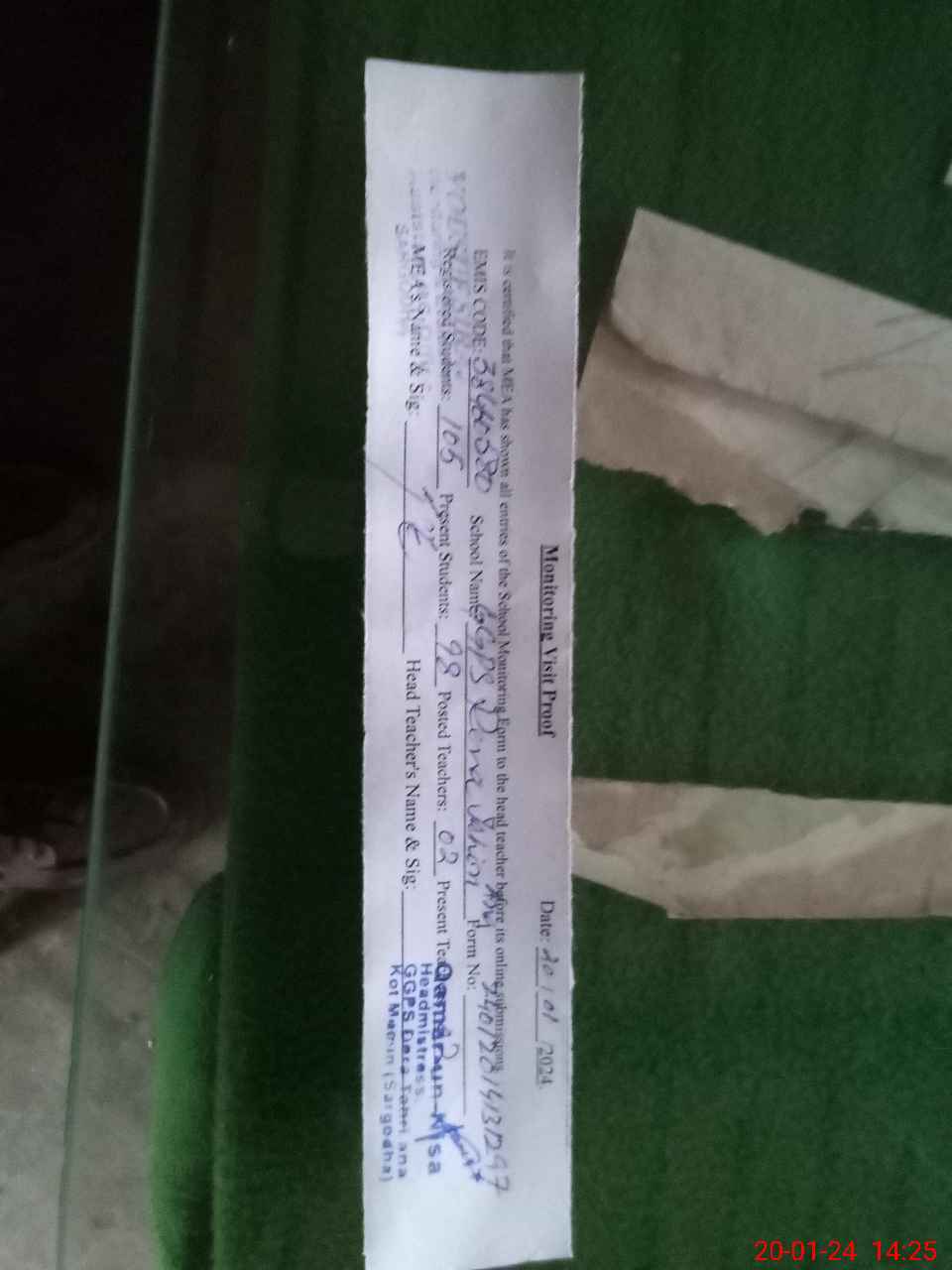 | Attendance Register | Head Teacher | MEA with School | Visit Proof |