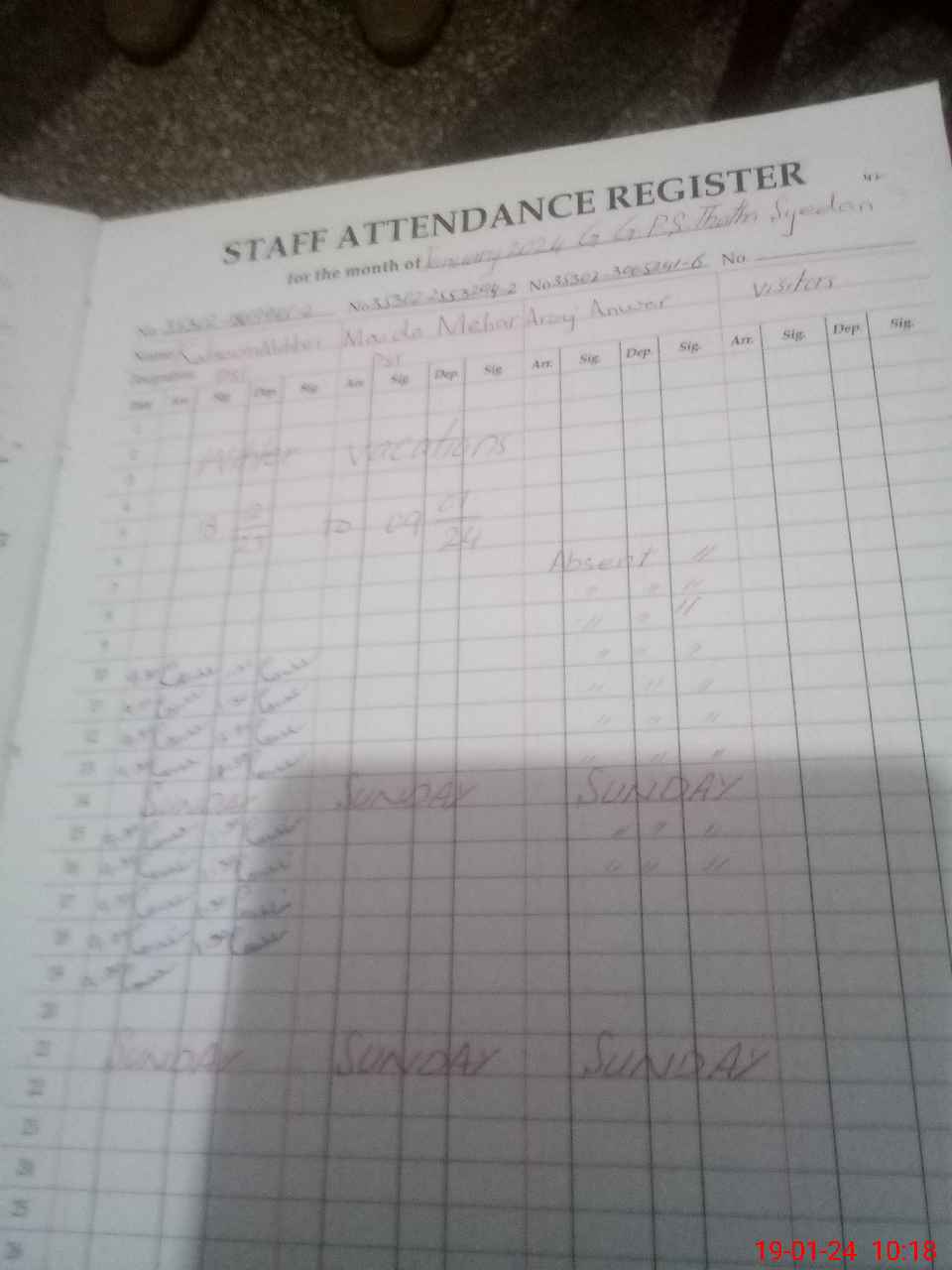 | 35**** | Ar**** An**** | 2 | 0 | 0 | 0 | 0 | 0 | 0 | 0 | 0 | 0 | Absent (Un-Authorized) | |