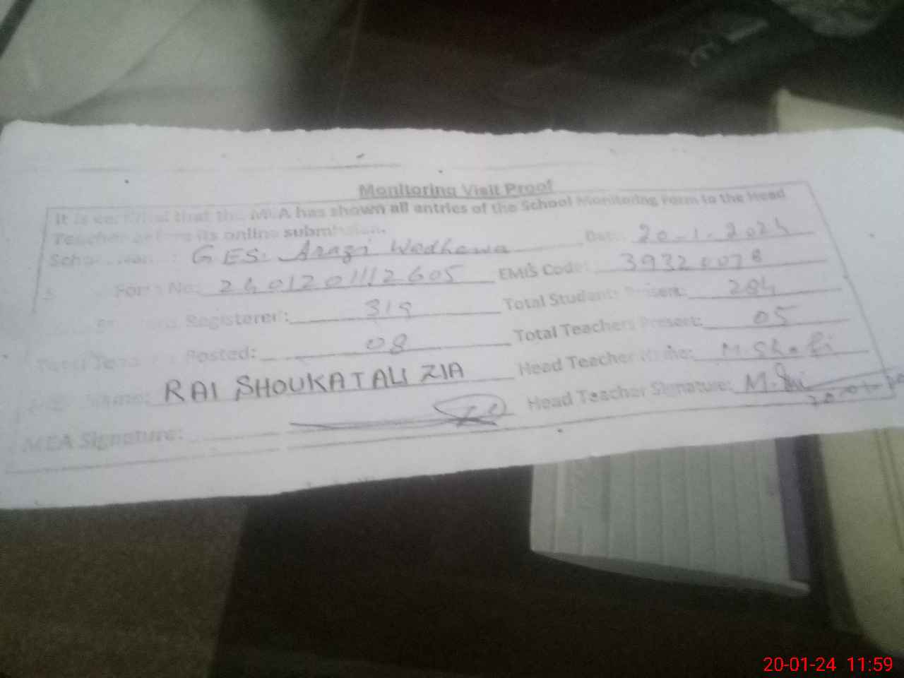 | EMIS Code: 39320078 | Name of School: GES ARAZI WADHAWA | |||