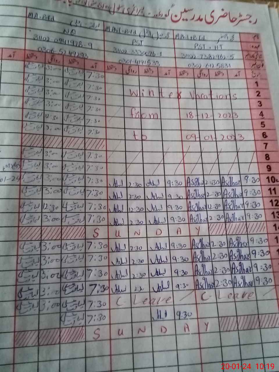 | CNIC | Full Name | Designation | R/C | Absence During Last Calender Month |