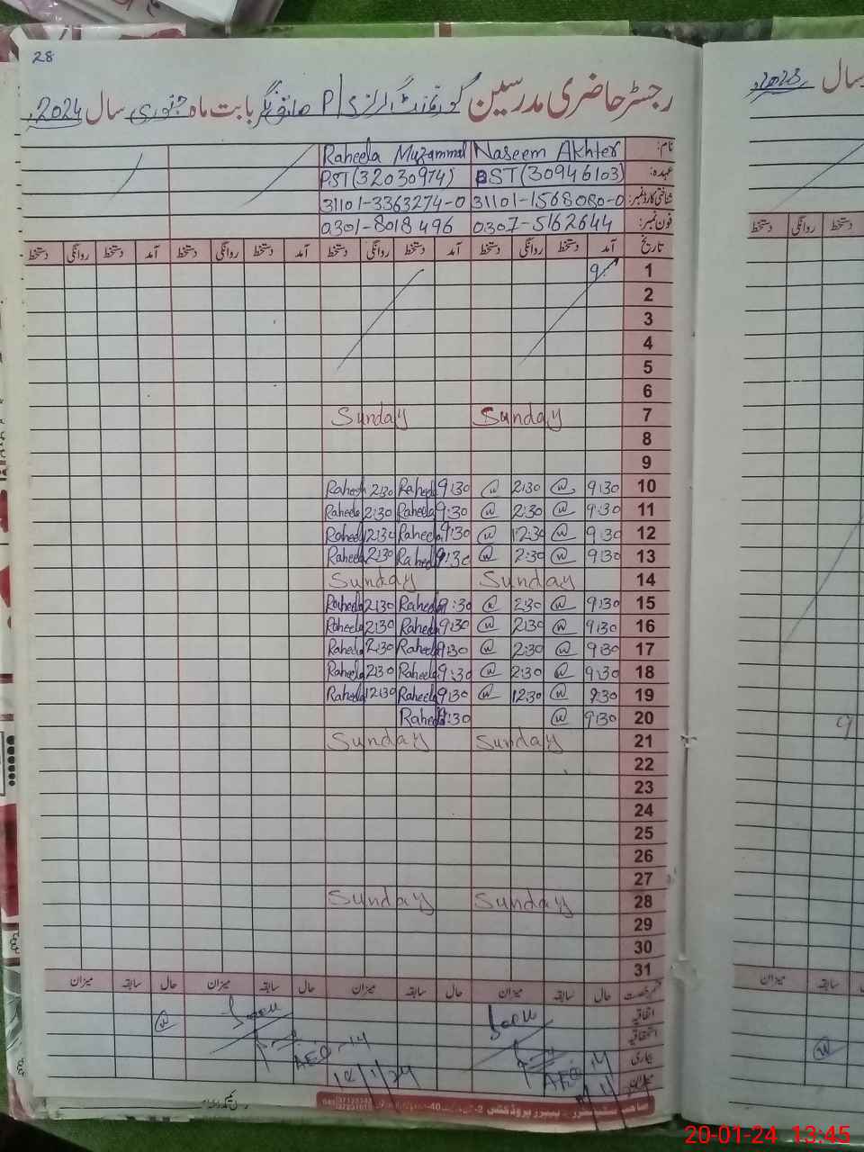 | Name: NA**** AK**** Designation: (School Headmaster's/Headmistress's) PST Phone/Cell Number: 03**** |