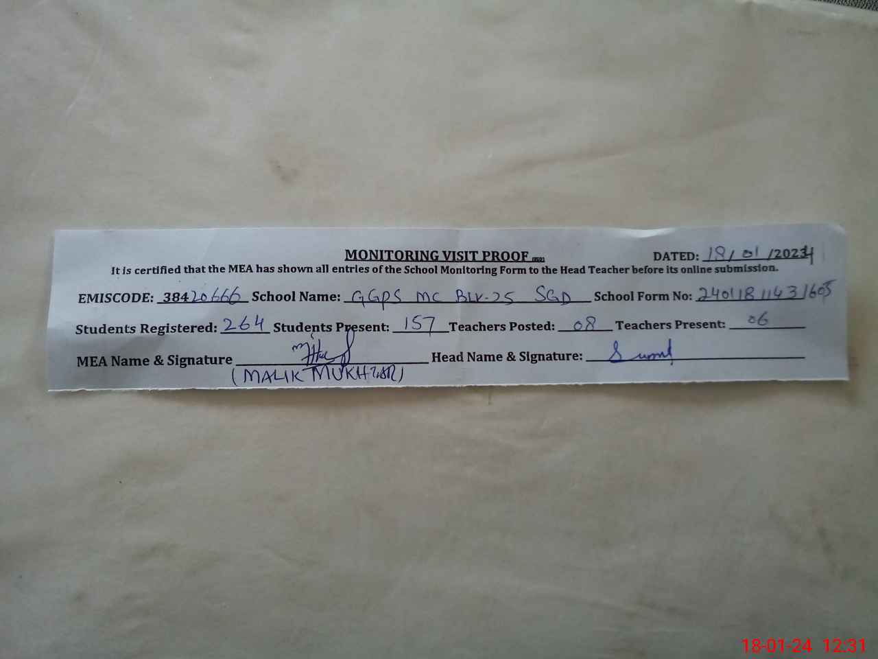 | EMIS Code: 38420666 | Name of School: GGPS MC BLOCK NO.25 SARGODHA | |||