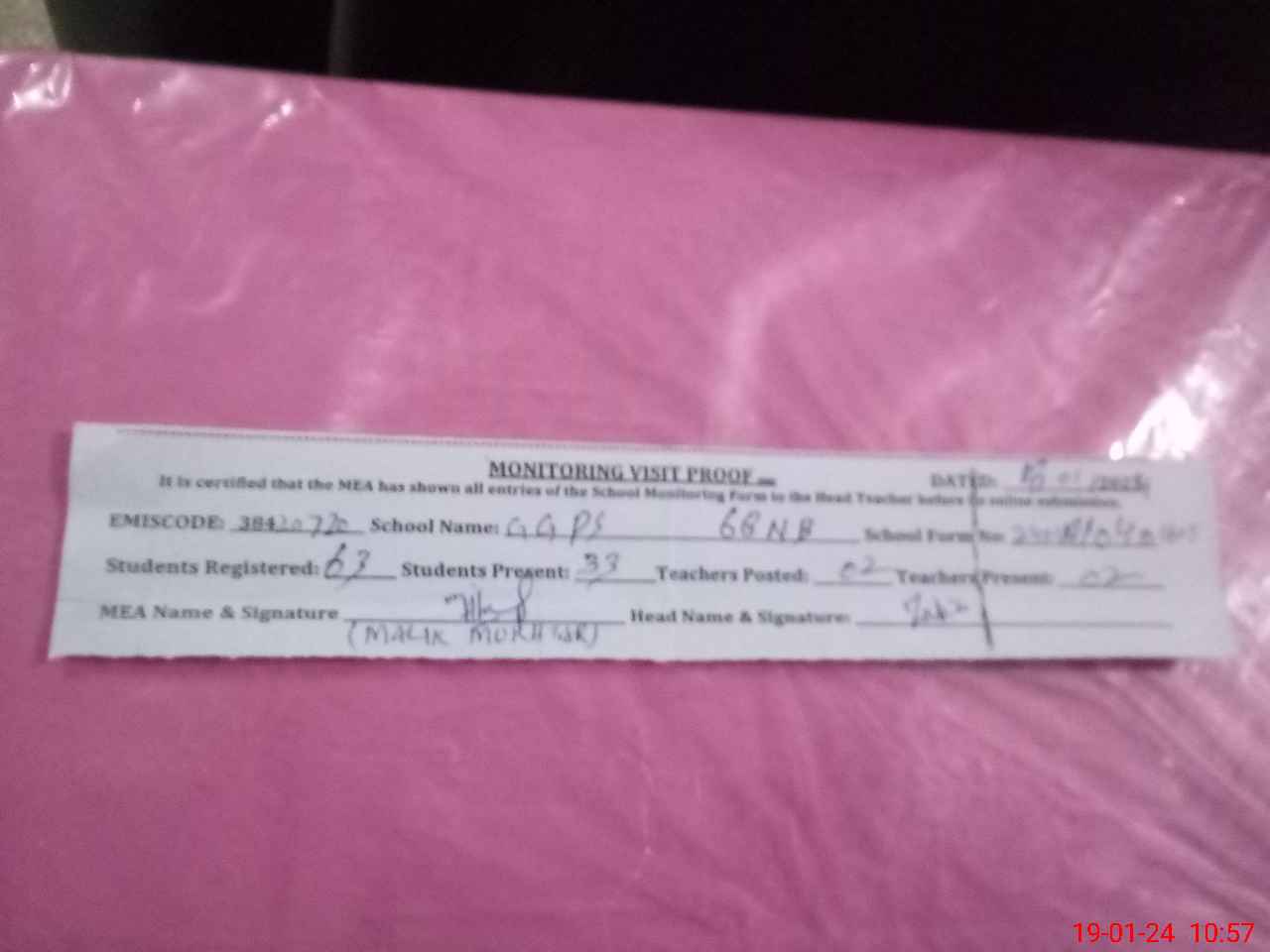 | Attendance Register | Head Teacher | MEA with School | Visit Proof |