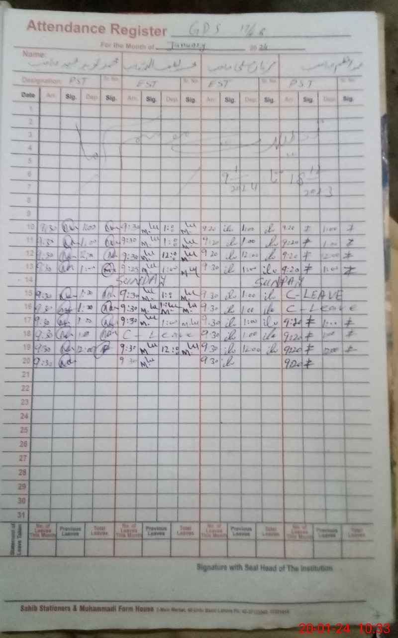| Name: GH**** MU**** Designation: (School Headmaster's/Headmistress's) PST Phone/Cell Number: 03**** |