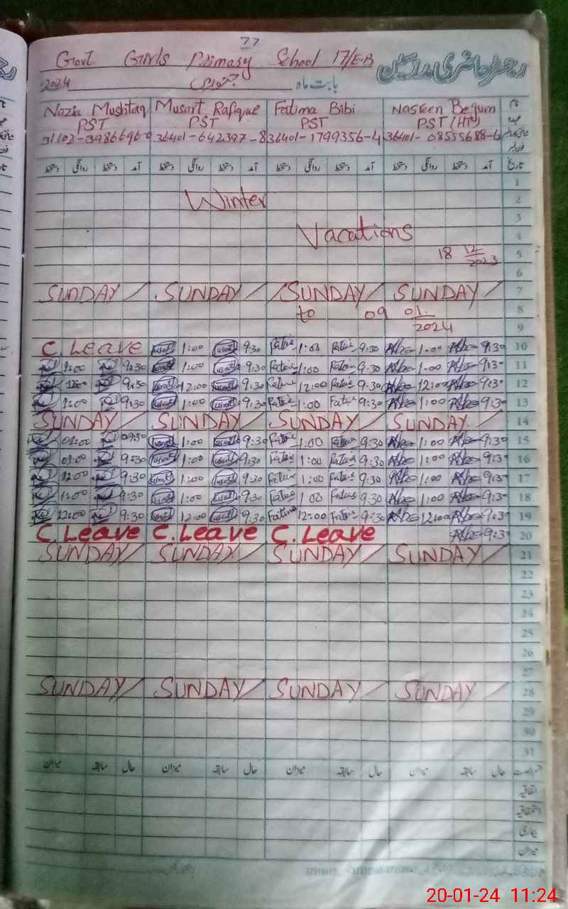 | Name: NA**** MU**** Designation: (School Headmaster's/Headmistress's) PST Phone/Cell Number: 03**** |