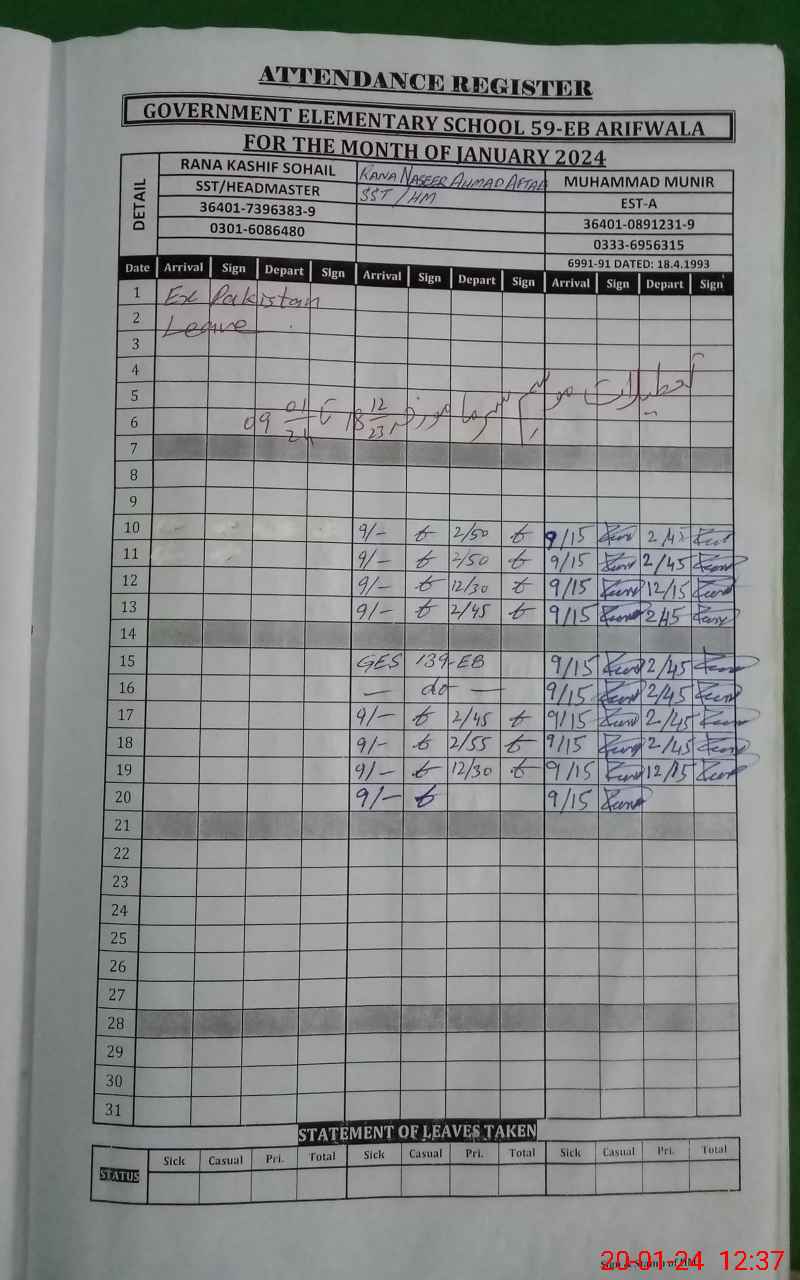 | EMIS Code: 39220039 | Name of School: GES CHAK NO. 59 EB | |||