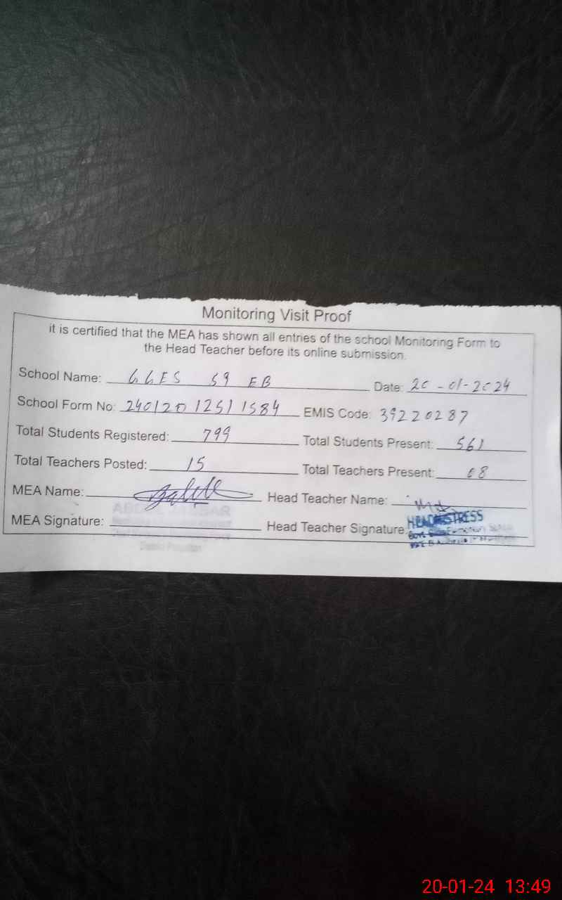 | Attendance Register | Head Teacher | MEA with School | Visit Proof |