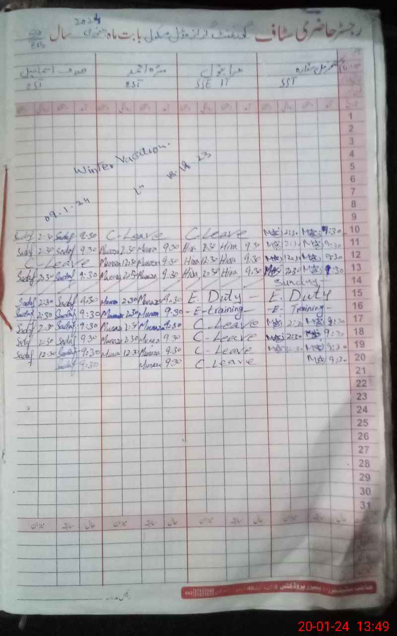 | 38**** | Sh**** Ak**** | PST | Regular | 6 | 0 | 0 | 0 | 0 | 0 | 0 | 0 | 6 | Casual |