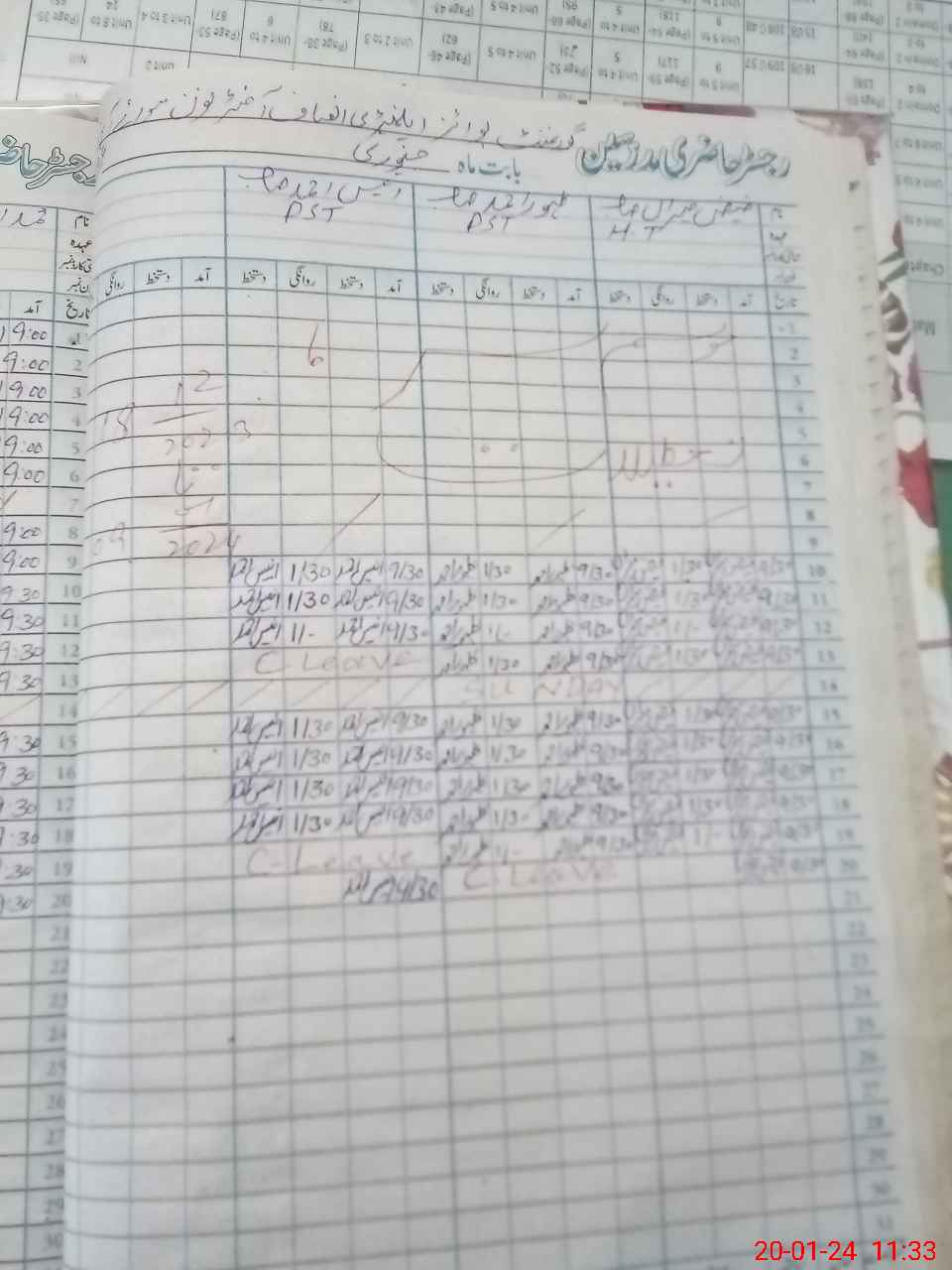 | CNIC | Full Name | Designation | R/C | Absence During Last Calender Month |