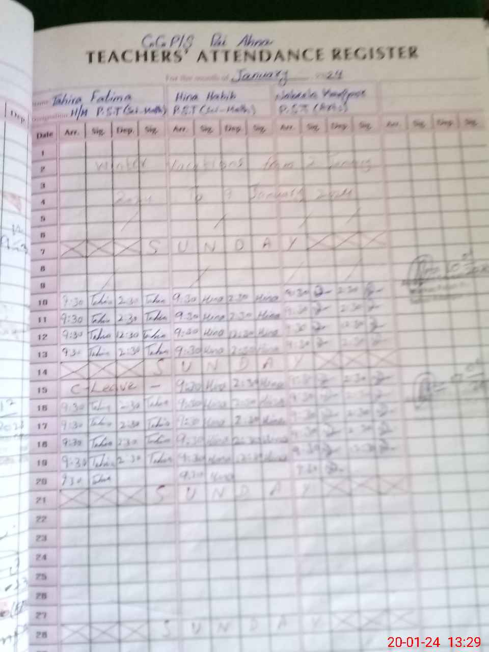 | CNIC | Full Name | Designation | R/C | Absence During Last Calender Month |