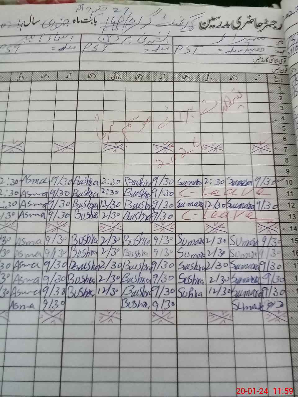 | CNIC | Full Name | Designation | R/C | Absence During Last Calender Month |