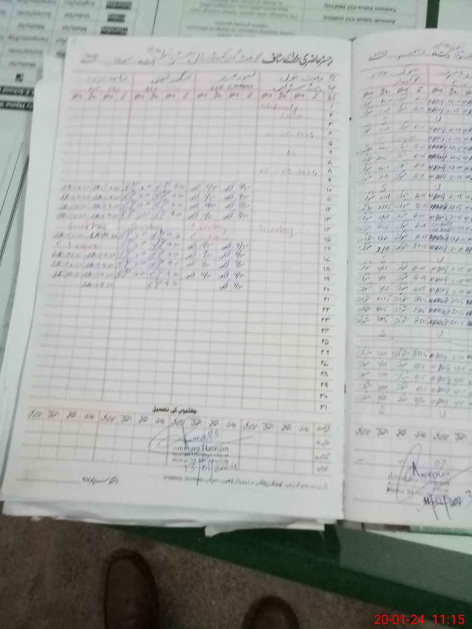 | CNIC | Full Name | Designation | R/C | Absence During Last Calender Month |