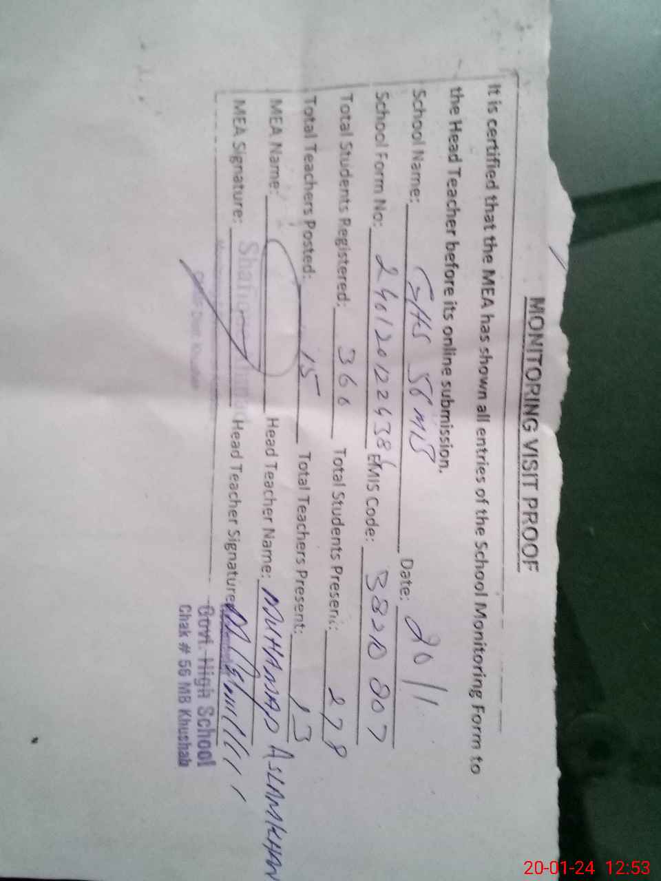 | EMIS Code: 38210807 | Name of School: GHS CHAK NO. 56 MB | |||