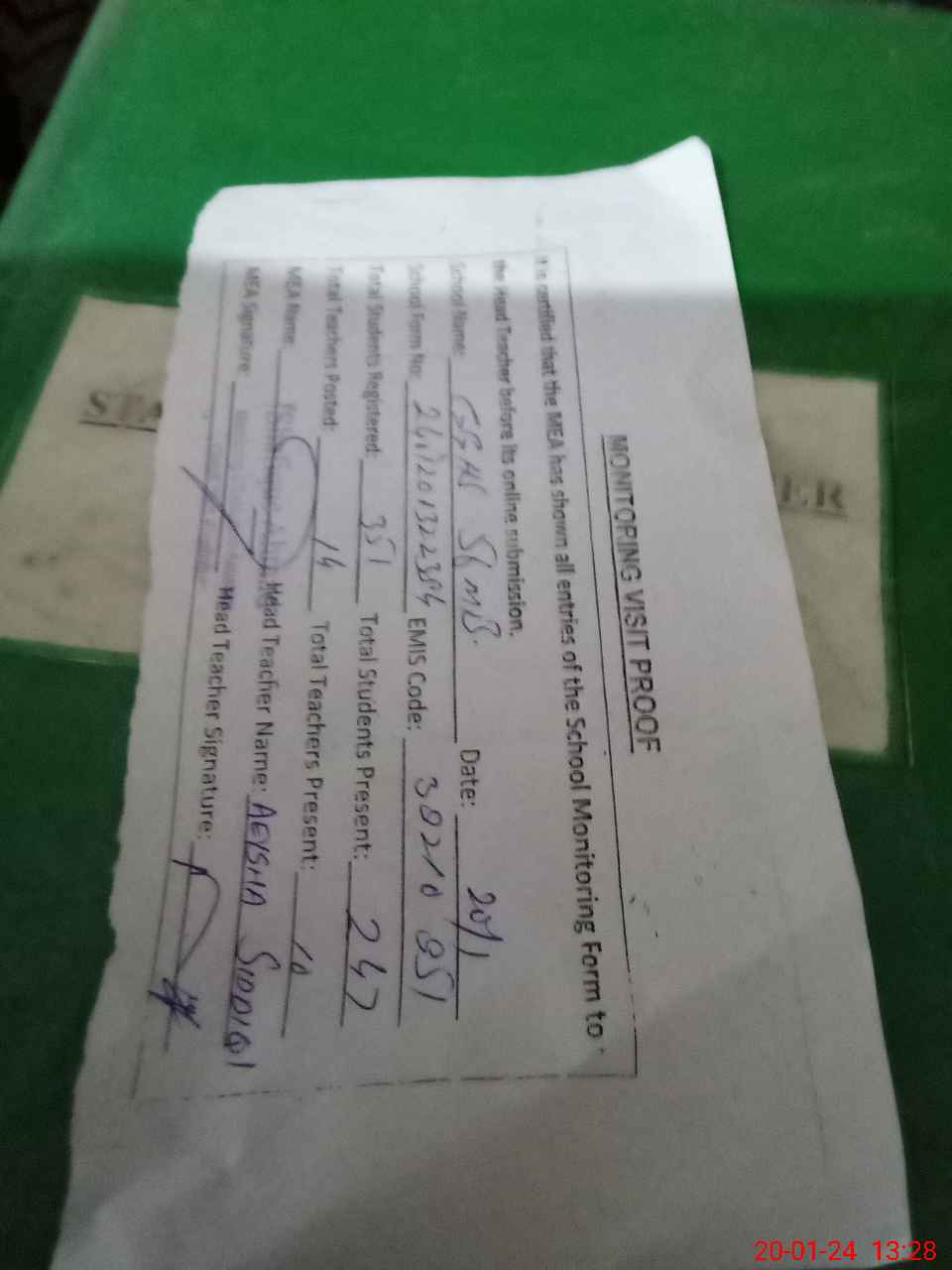 | Certified that this School was Inspected by the Undersigned MEA/DMO Today and the Information Stated Above is as Per Record. | |||||