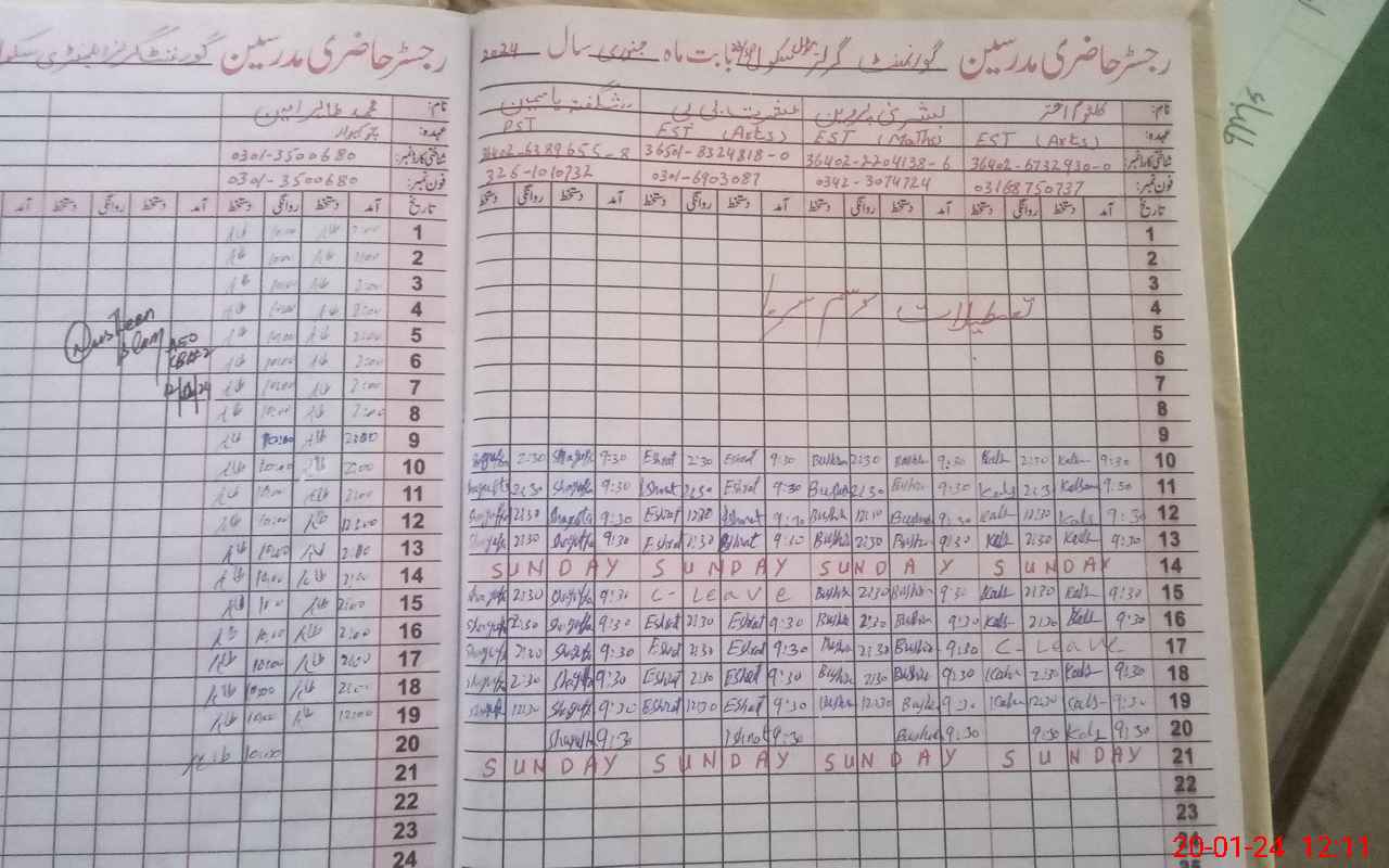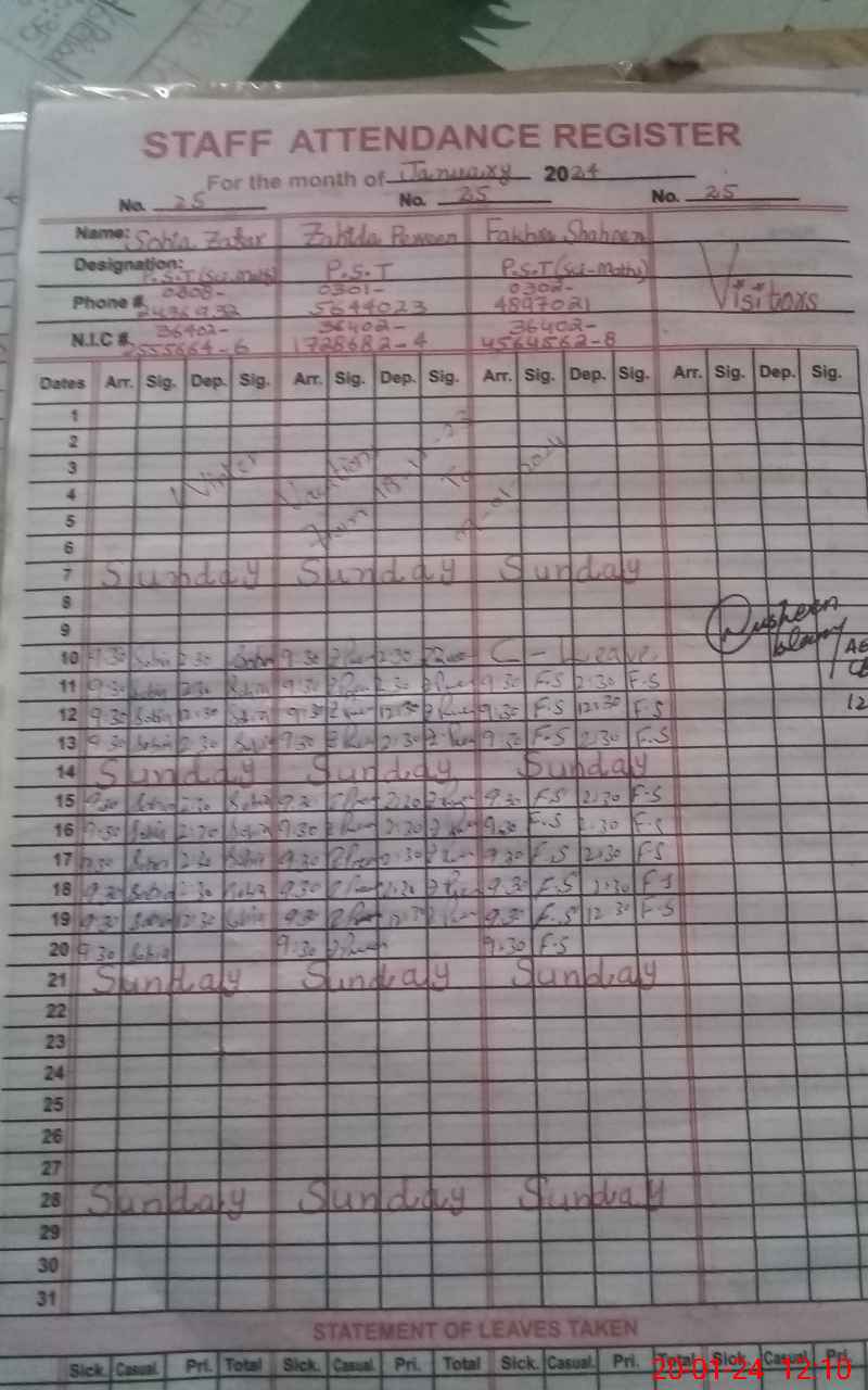 | CNIC | Full Name | Designation | R/C | Absence During Last Calender Month |