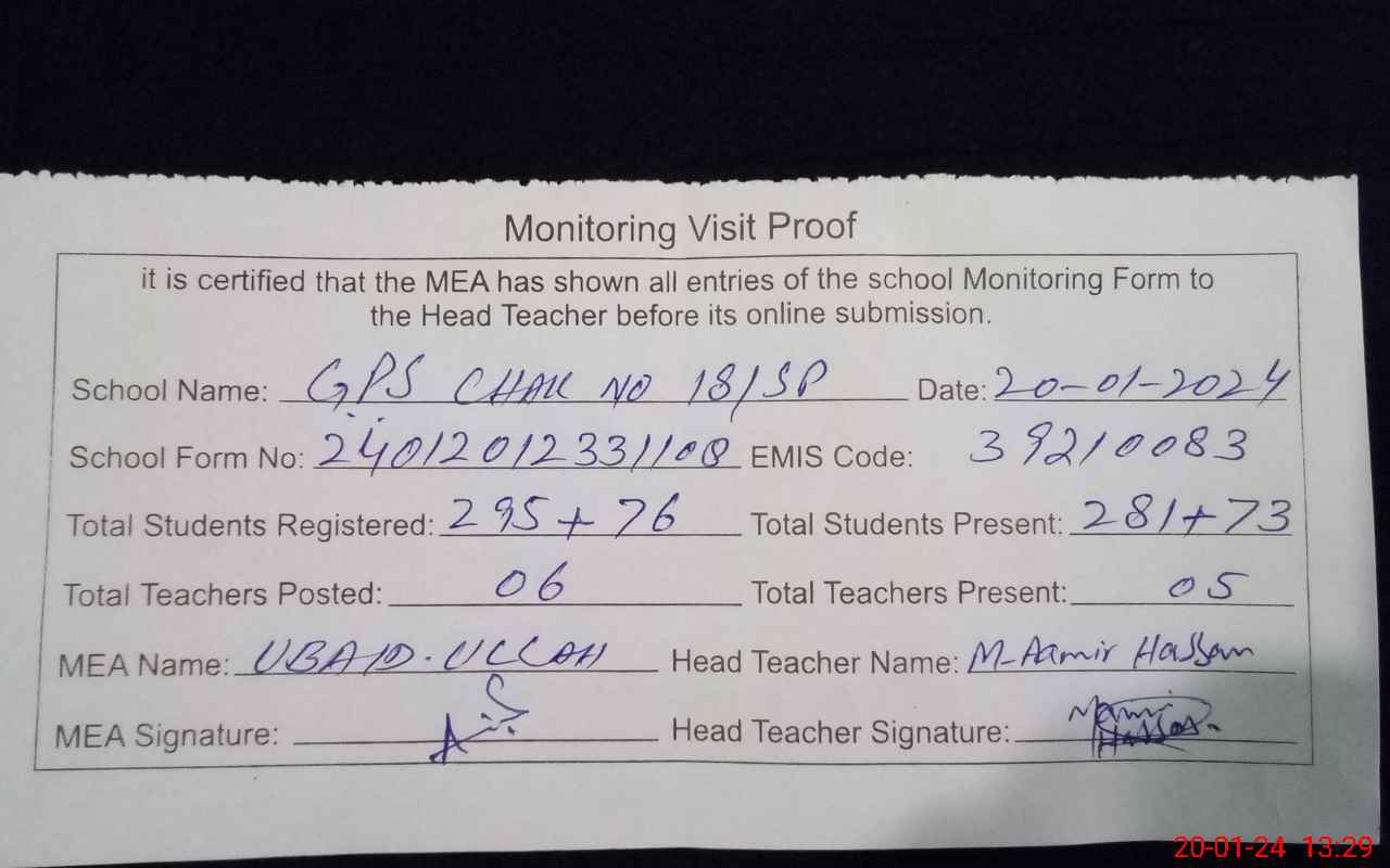 | EMIS Code: 39210083 | Name of School: GPS 18-SP P/O 17/S.P PAKPATTAN | |||