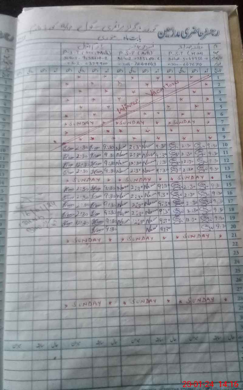 | CNIC | Full Name | Designation | R/C | Absence During Last Calender Month |