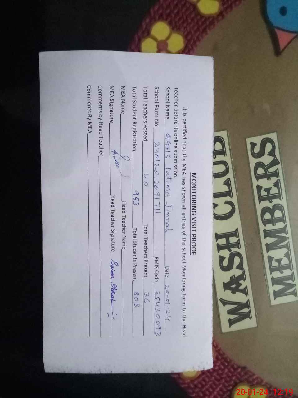 | EMIS Code: 35430093 | Name of School: GGHS FATIMA JINNAH SHEIKHUPURA | |||