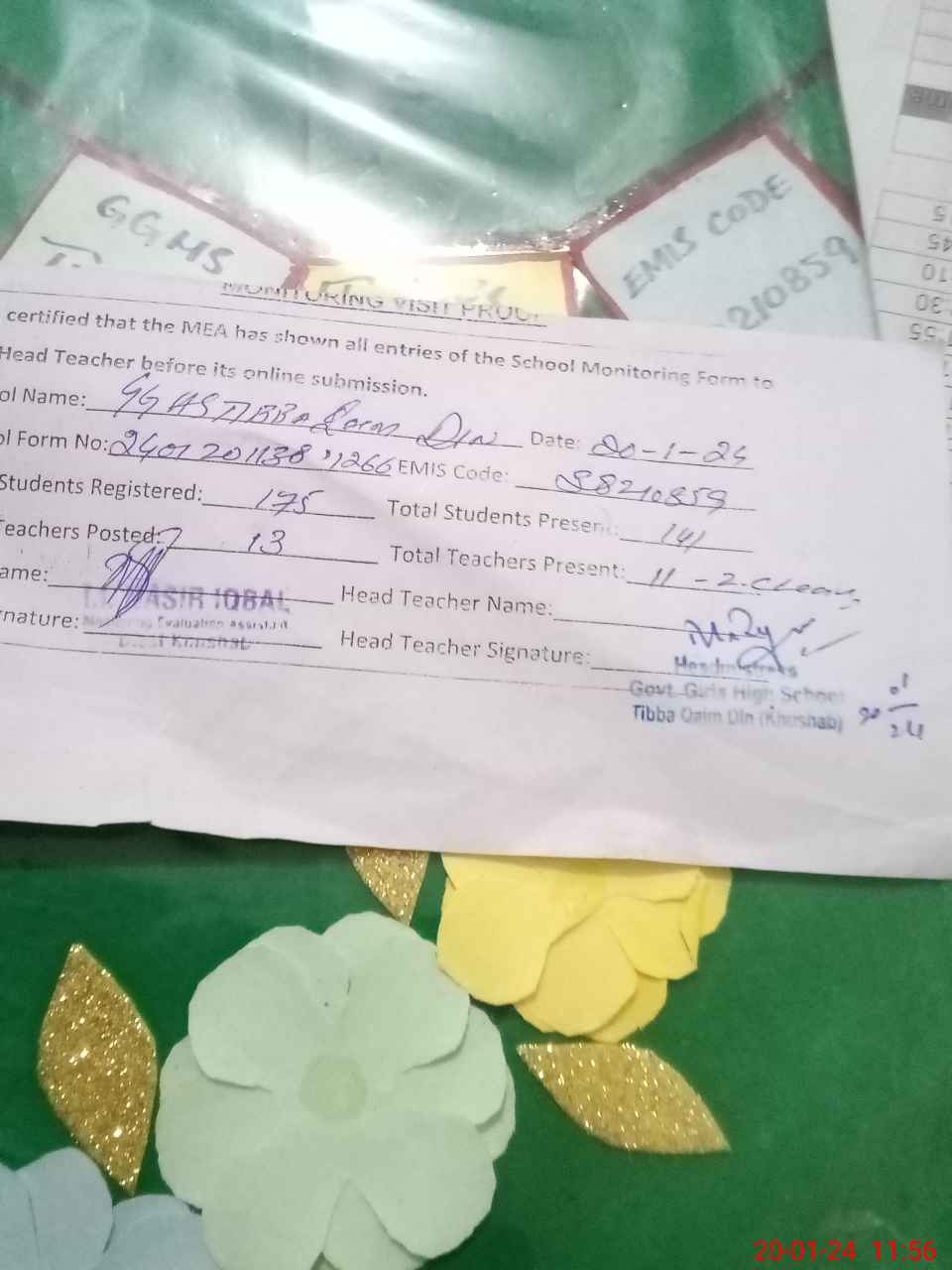 | EMIS Code: 38210859 | Name of School: GGHS TIBBA QAIM DIN | |||