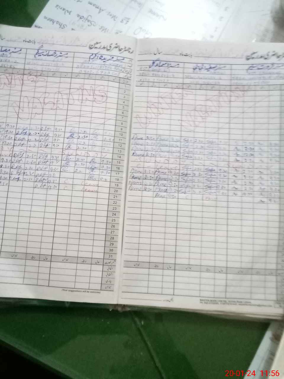 | CNIC | Full Name | Designation | R/C | Absence During Last Calender Month |