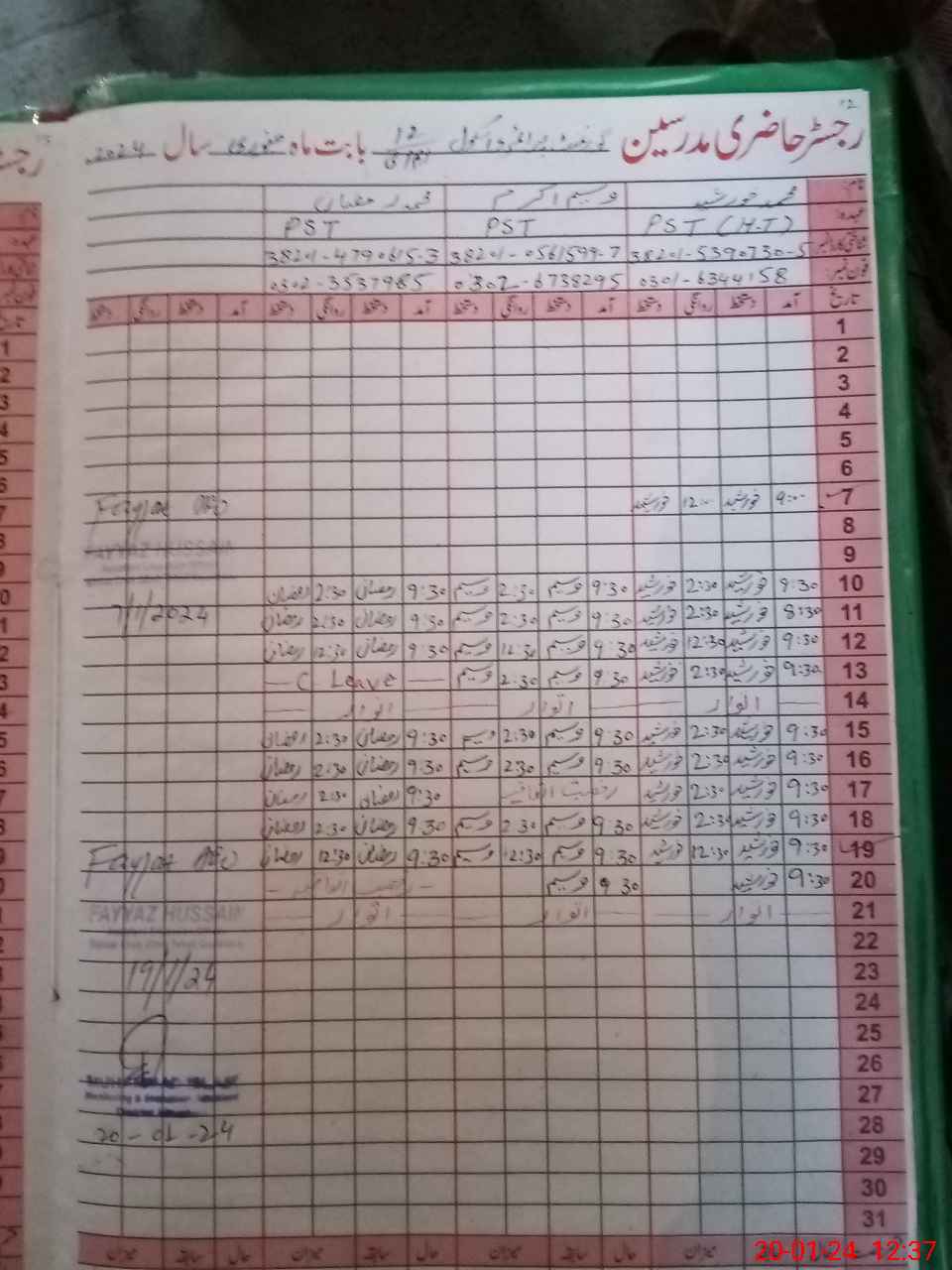 | CNIC | Full Name | Designation | R/C | Absence During Last Calender Month |
