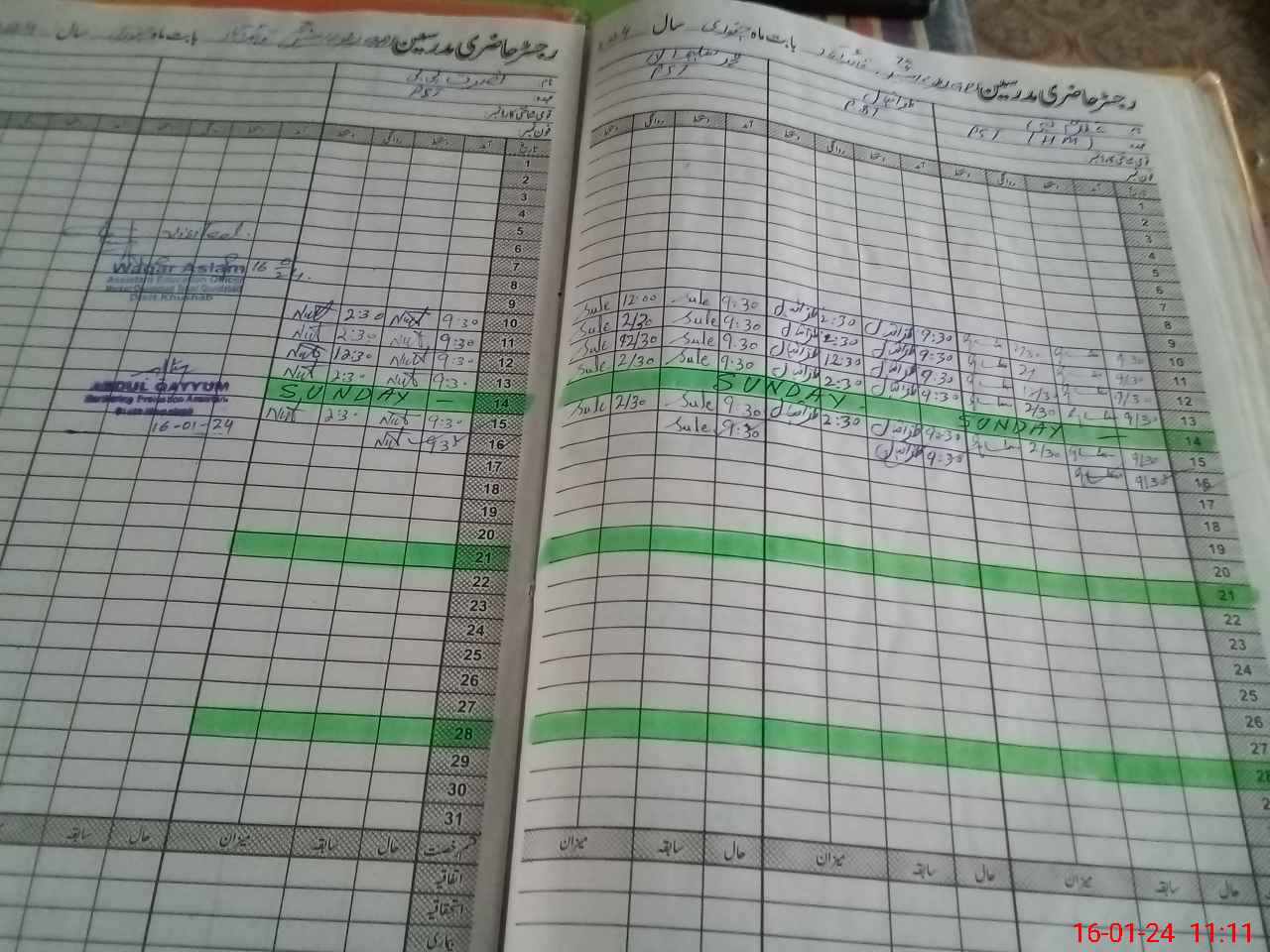 | CNIC | Full Name | Designation | R/C | Absence During Last Calender Month |