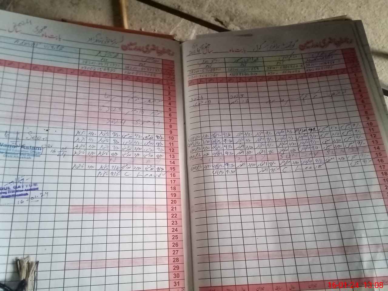 | CNIC | Full Name | Designation | R/C | Absence During Last Calender Month |