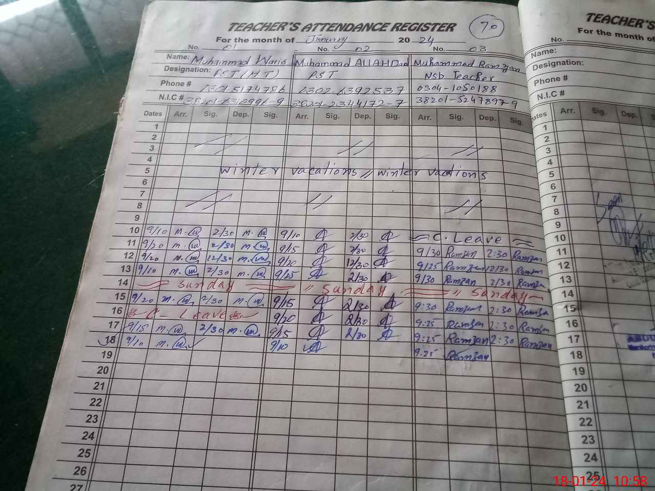 | CNIC | Full Name | Designation | R/C | Absence During Last Calender Month |