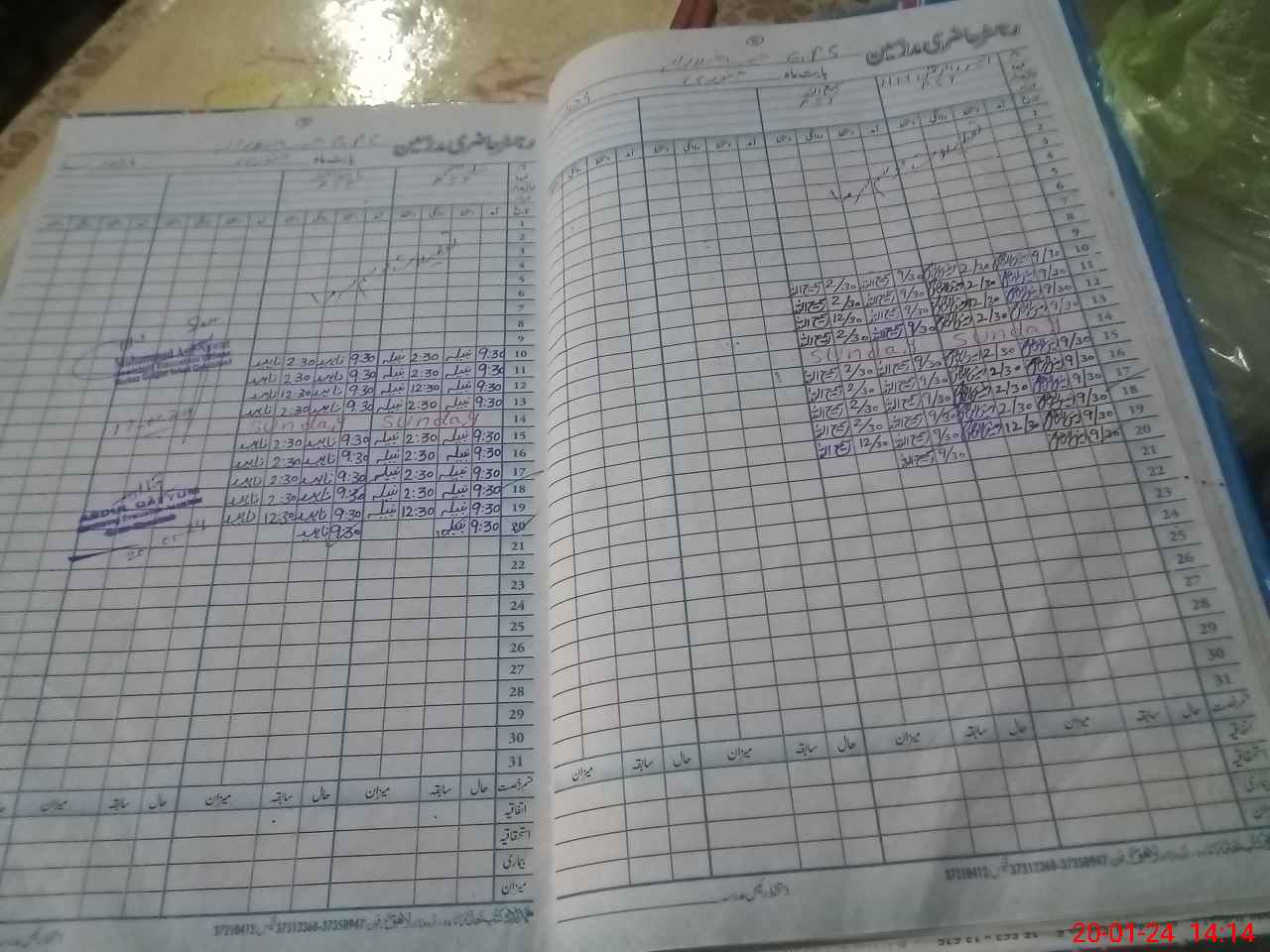 | CNIC | Full Name | Designation | R/C | Absence During Last Calender Month |