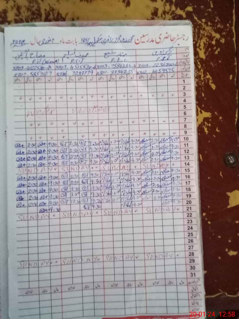 | CNIC | Full Name | Designation | R/C | Absence During Last Calender Month |