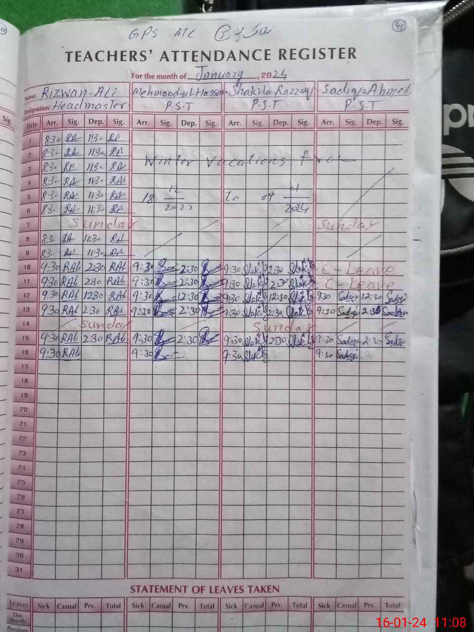 | Name: Ri**** Al**** Designation: (School Headmaster's/Headmistress's) PST Phone/Cell Number: 03**** |