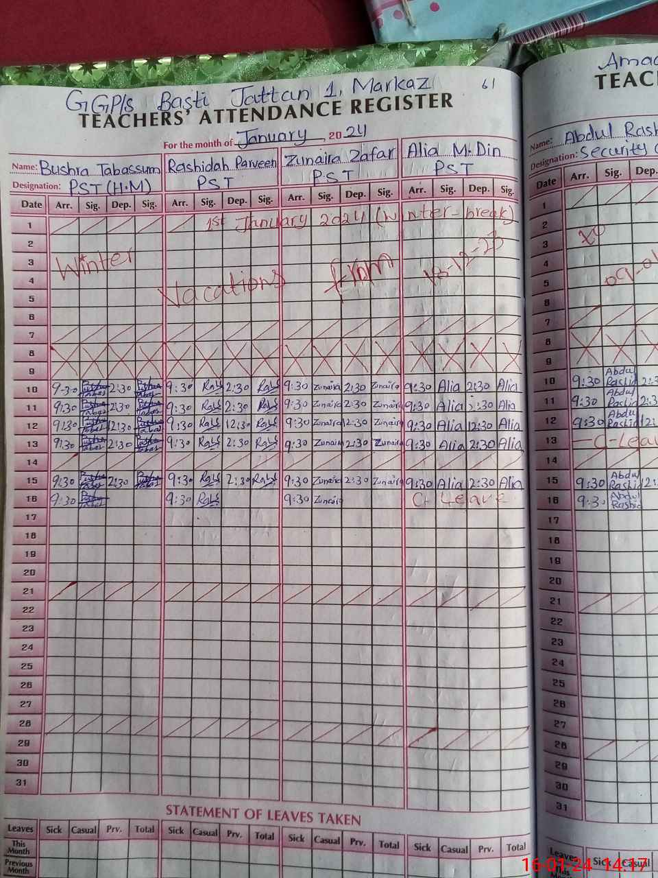 | 31**** | Al**** Mu**** Di**** | PST | Regular | 2 | 0 | 0 | 0 | 0 | 0 | 0 | 0 | 2 | Casual |