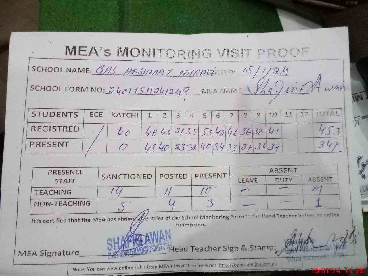 | EMIS Code: 36410057 | Name of School: GHS HASHMAT MIRALI, SARAI SIDHU | |||