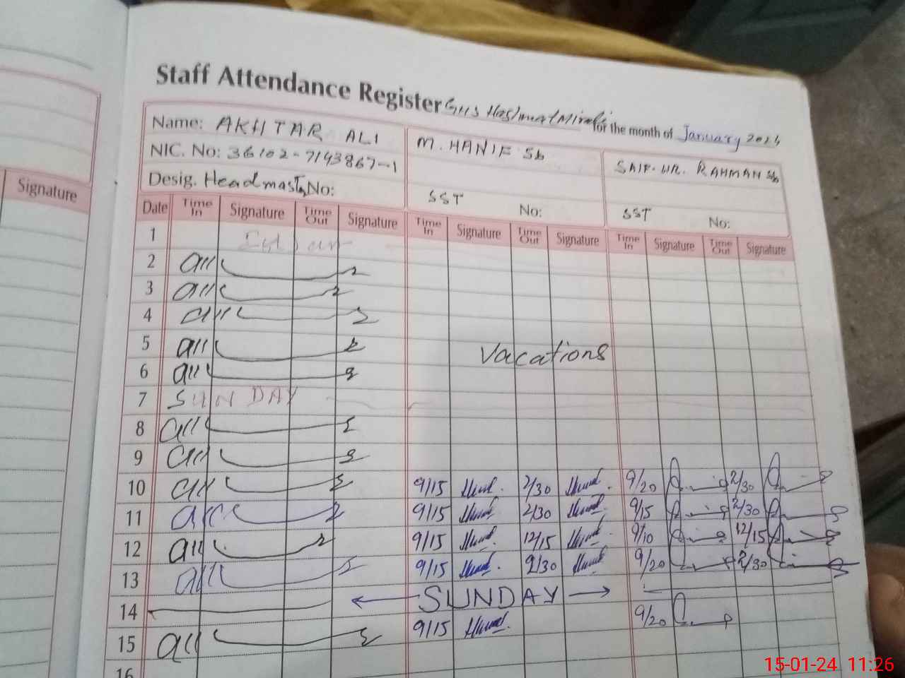 | Name: SH**** AL**** Designation: (School Headmaster's/Headmistress's) HEAD MASTER Phone/Cell Number: 03**** |