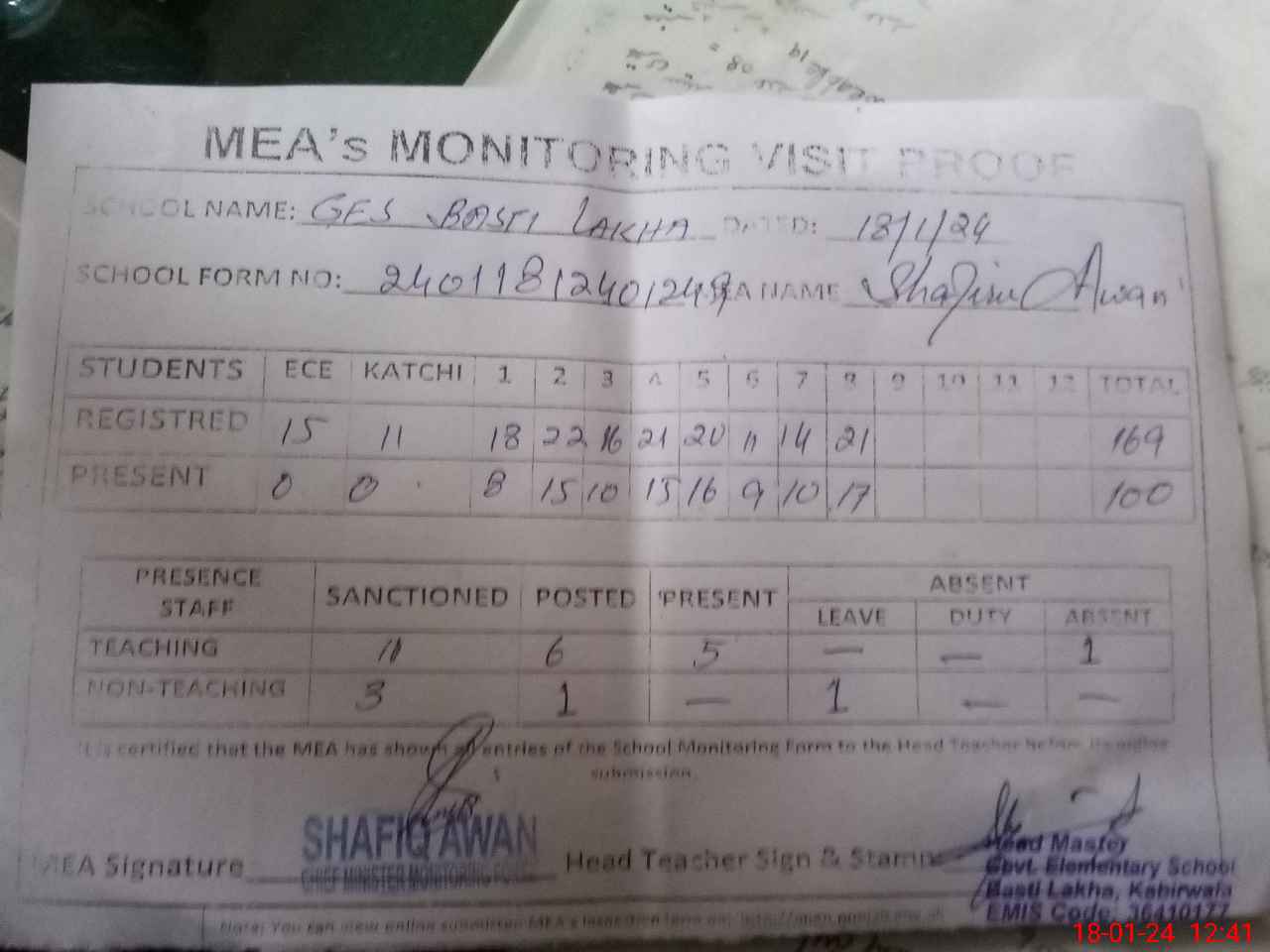 | EMIS Code: 36410177 | Name of School: GES BASTI LAKHA, MOUZA MARI SAHU, KABIRWALA | |||