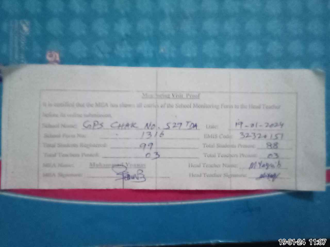| EMIS Code: 32320151 | Name of School: GPS CHAK NO. 529/TDA | |||