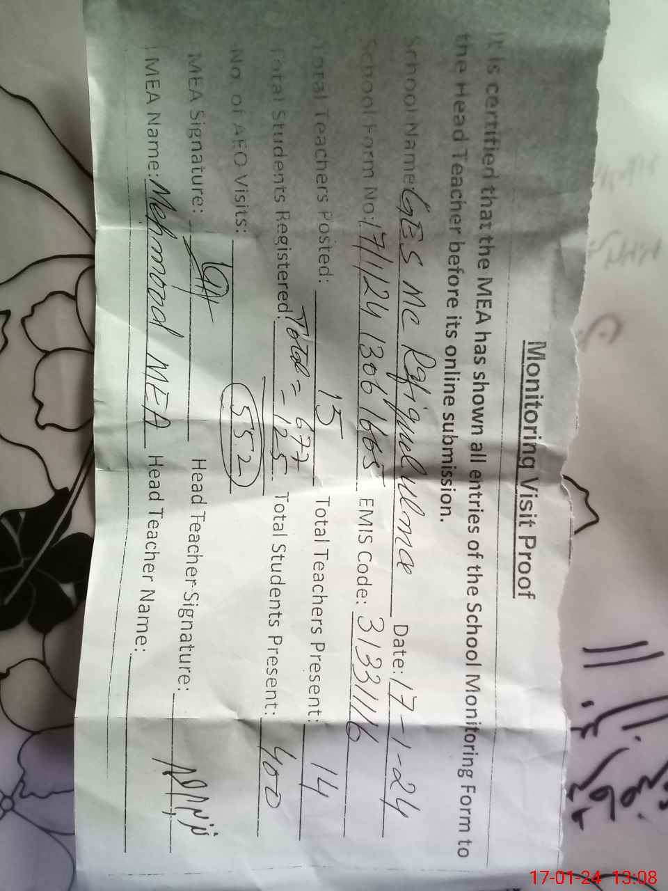| EMIS Code: 31331116 | Name of School: GES MC RAFIQ-UL-ULMA | |||