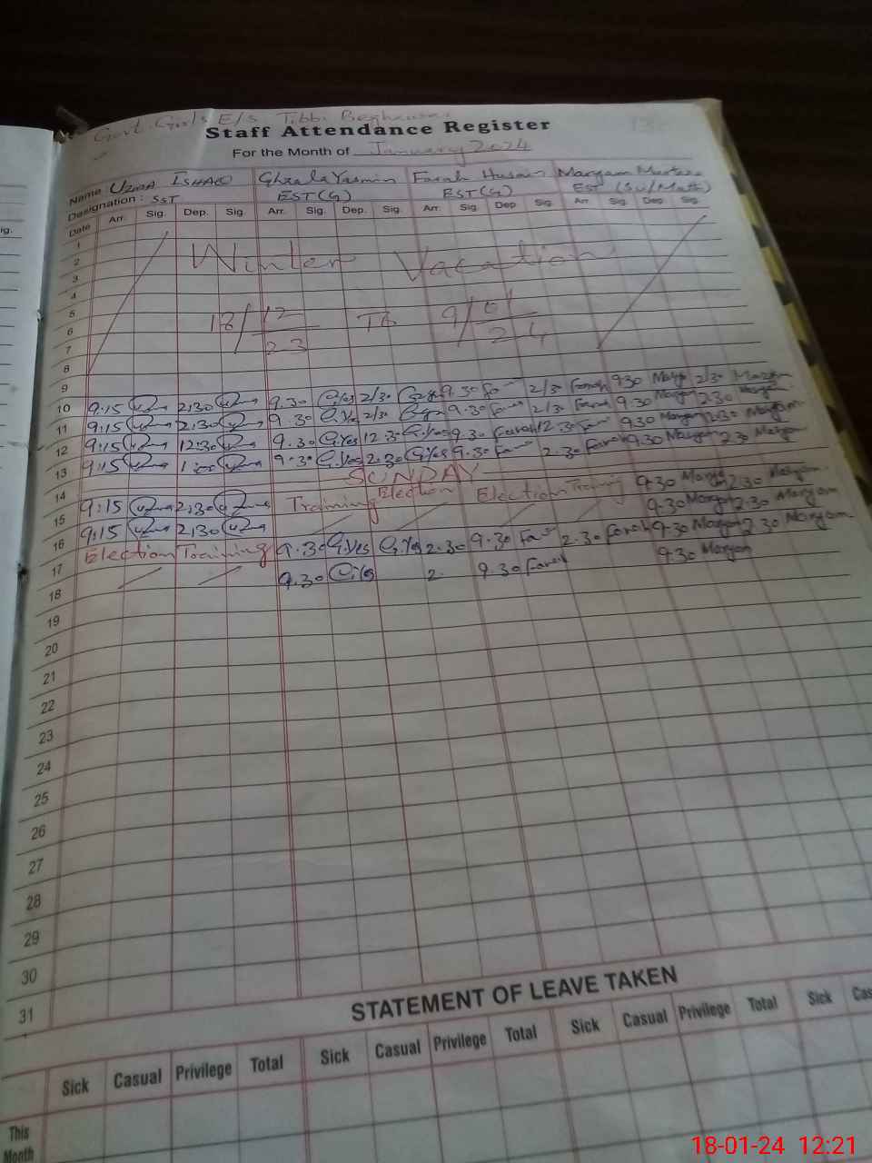 | Leave | Duty | Absent | Maternity | Medical | Ex- Pak |