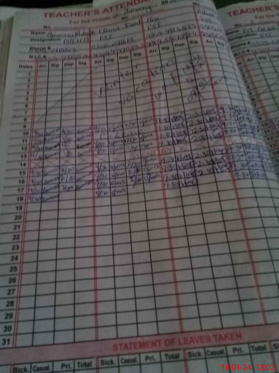 | CNIC | Full Name | Designation | R/C | Absence During Last Calender Month |