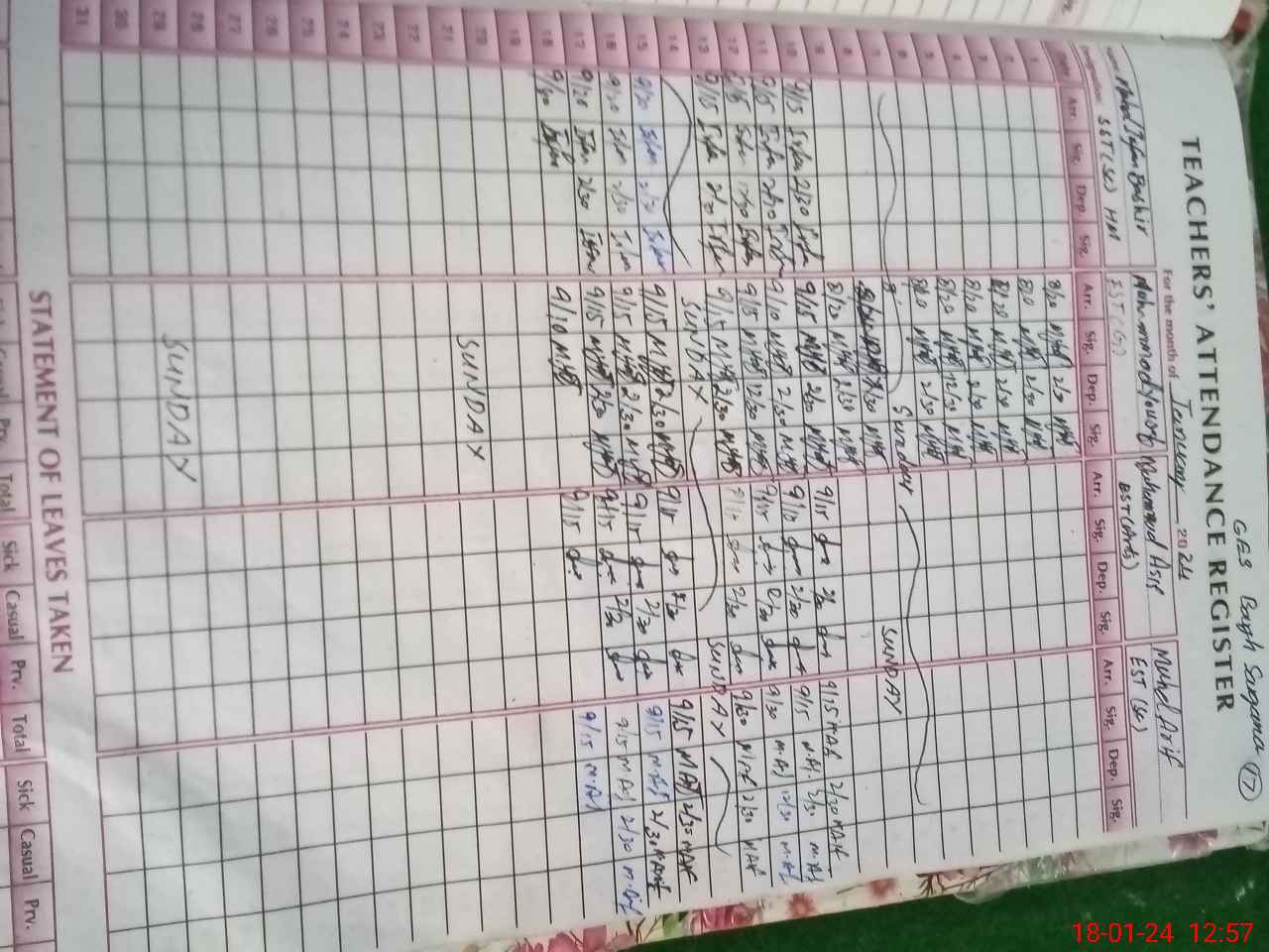 | CNIC | Full Name | Designation | R/C | Absence During Last Calender Month |
