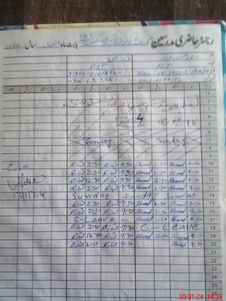 | CNIC | Full Name | Designation | R/C | Absence During Last Calender Month |