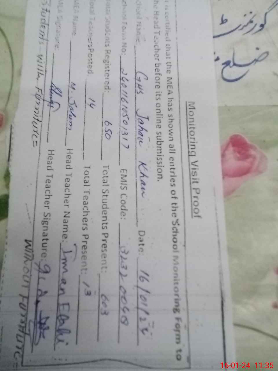 | EMIS Code: 32320048 | Name of School: GHS JAHAN KHAN | |||