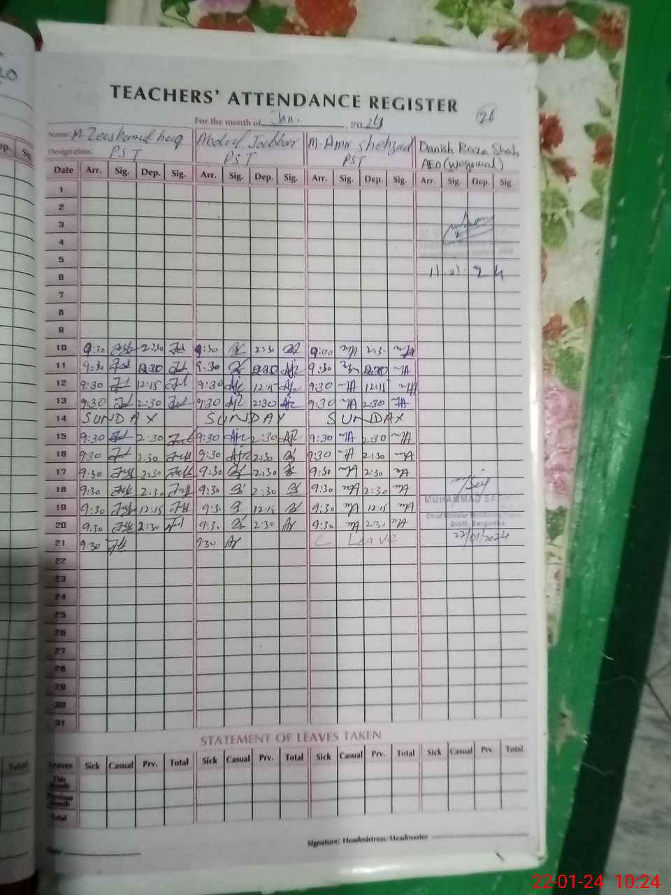 | Name: AB**** JA**** Designation: (School Headmaster's/Headmistress's) PST Phone/Cell Number: 03**** |