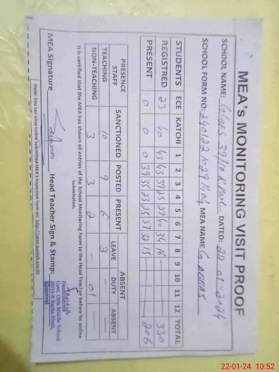 | EMIS Code: 36420116 | Name of School: GGES 39/10-R, KACHA KHUH | |||