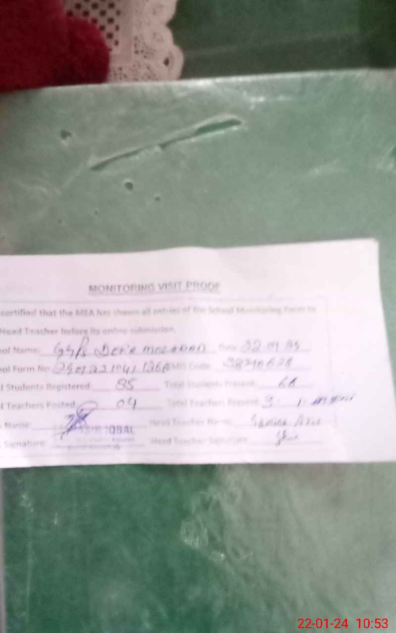 | EMIS Code: 38210628 | Name of School: GGPS DERA MOLADAD | |||