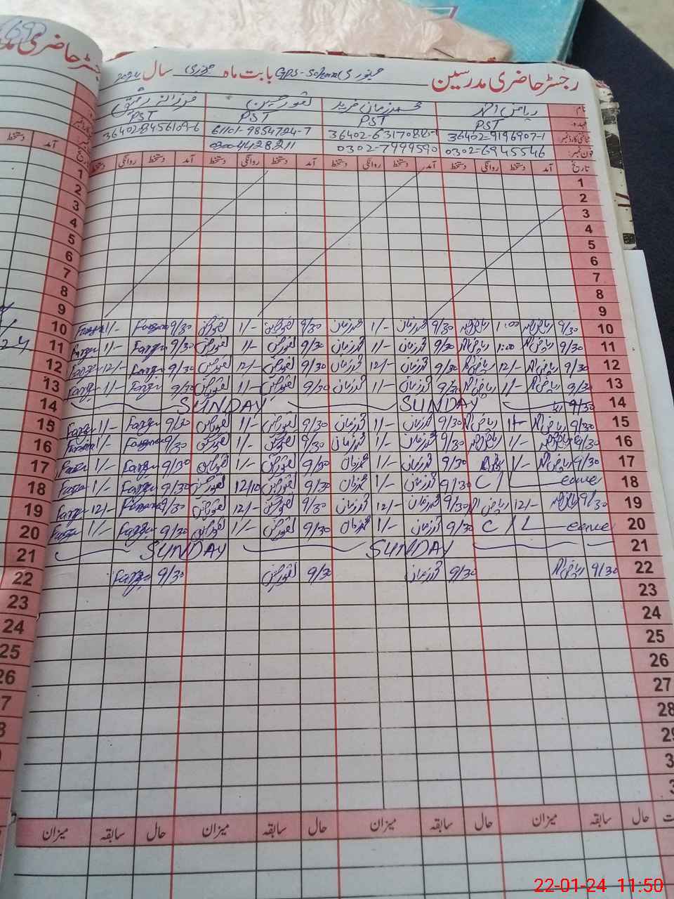 | Name: RI**** AH**** Designation: (School Headmaster's/Headmistress's) PST Phone/Cell Number: 03**** |