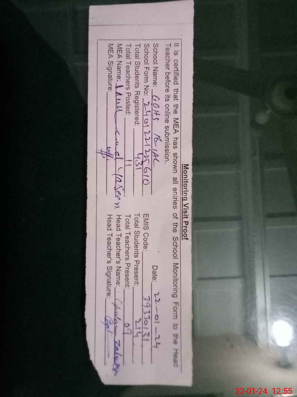 | Name: GH**** ZA**** Designation: (School Headmaster's/Headmistress's) SST IN CHARGE HM Phone/Cell Number: 03**** |