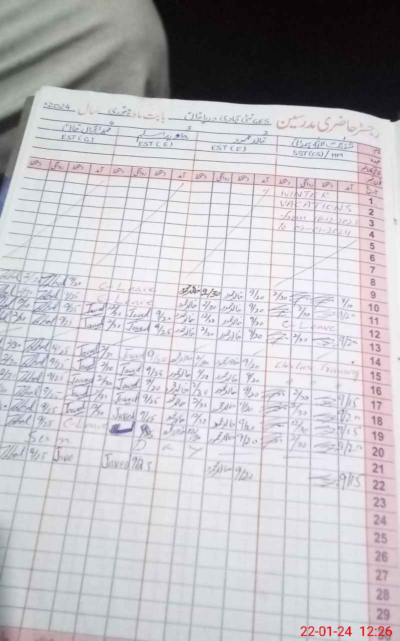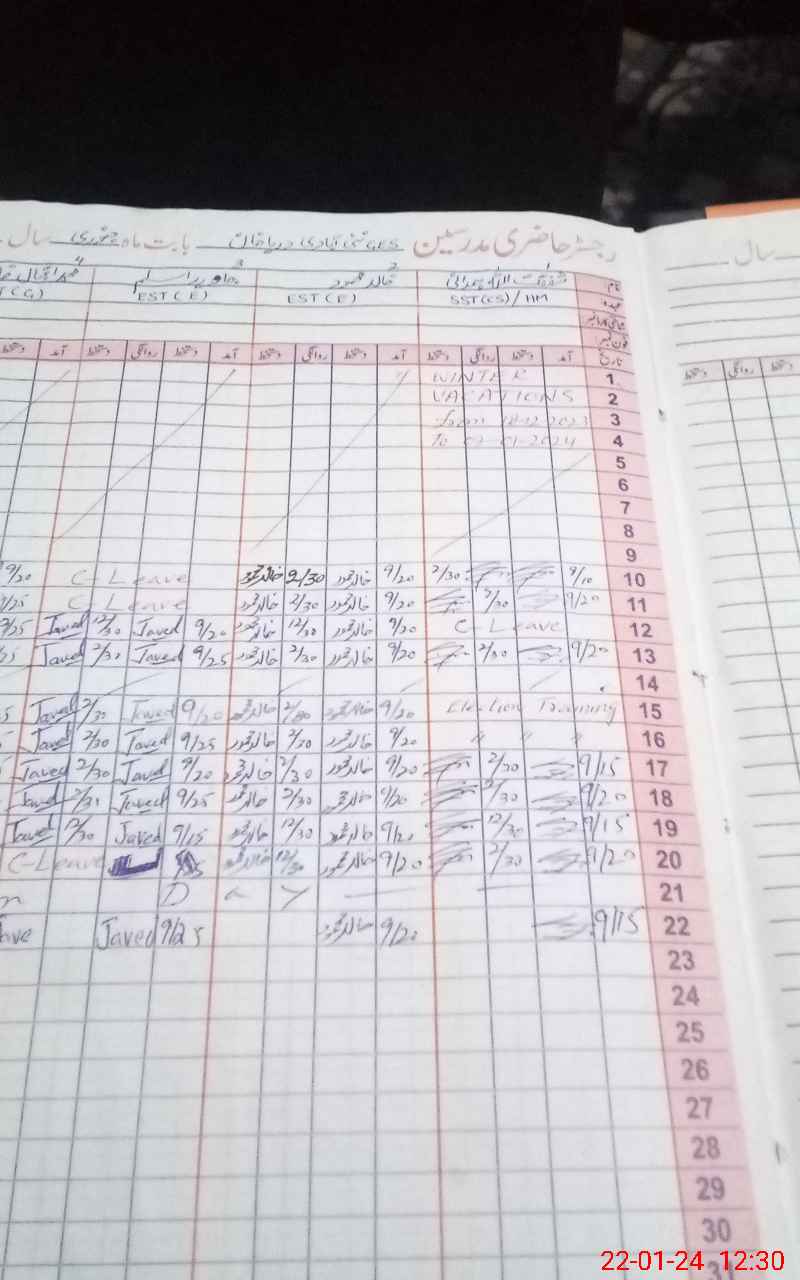 | CNIC | Full Name | Designation | R/C | Absence During Last Calender Month |