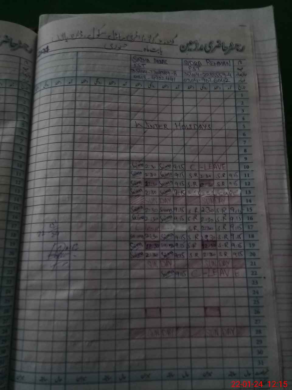 | CNIC | Full Name | Designation | R/C | Absence During Last Calender Month |
