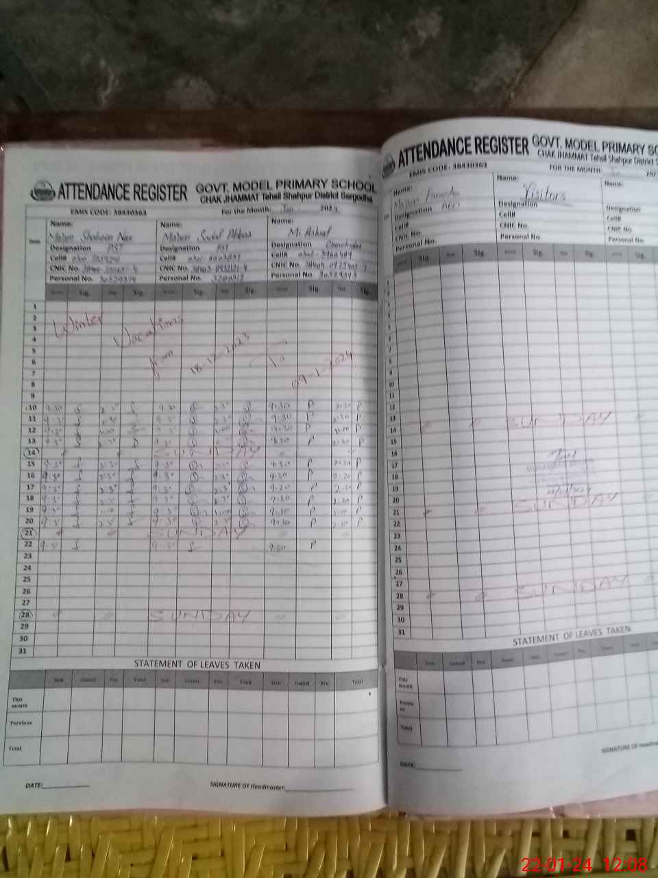 | CNIC | Full Name | Designation | R/C | Absence During Last Calender Month |